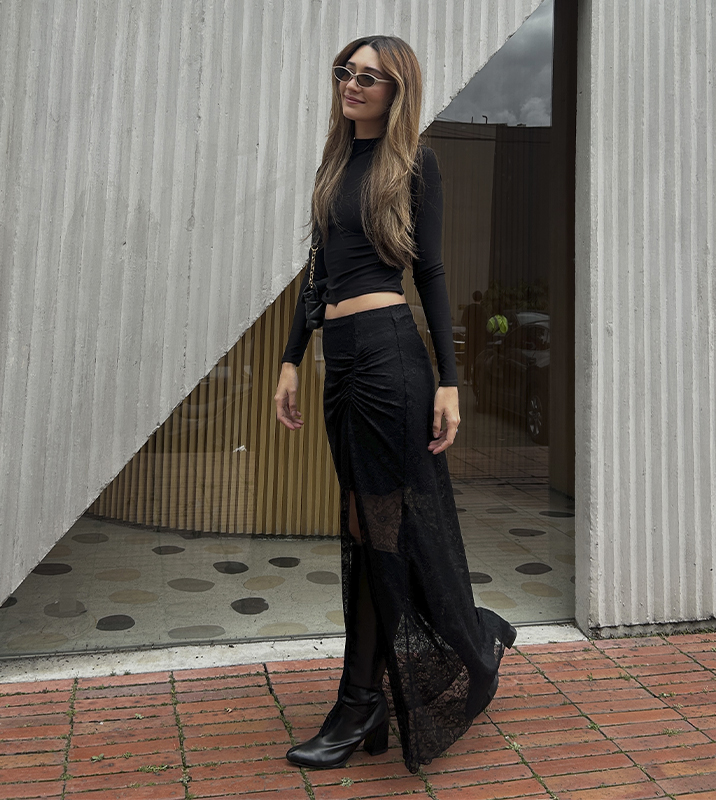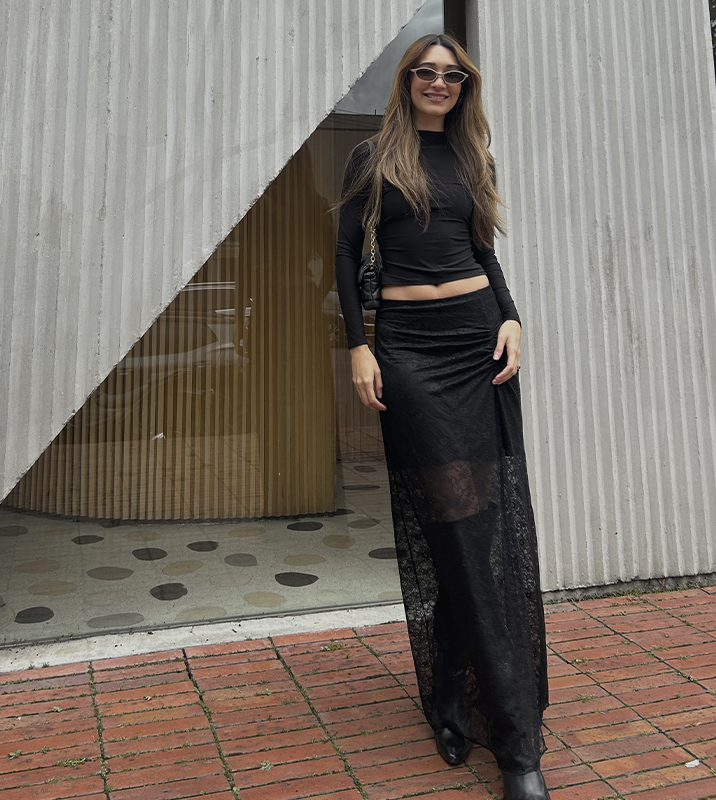 Falda Larga Encaje Negro