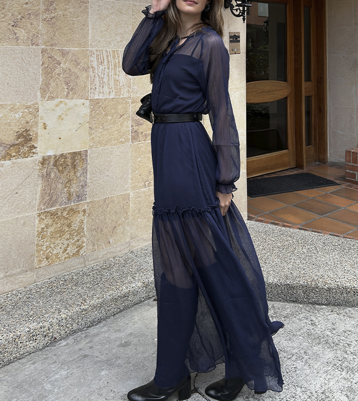 Vestido Largo Chifón Azul