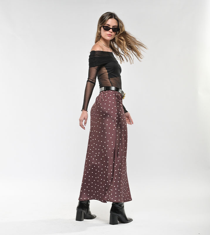 Falda larga diseñada en seda satín, tiro alto, pretina con cucho interno de 4 cm para más comodidad y ajuste; no tiene cremallera en la parte de atrás. por el tipo de tela la hace practica y versátil, perfecta para llevar con un cinturón sobrepuesto o sola. una pieza que se adapta con facilidad a un look casual de día o un look mas sofisticado para la noche. Manufactura 100% Colombiana.