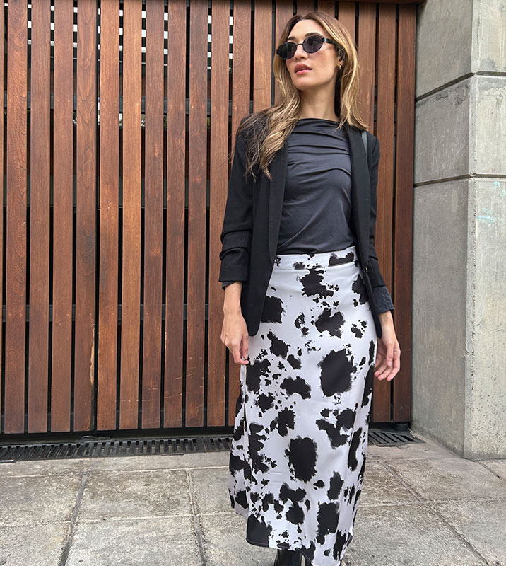 Falda midi seda cow print