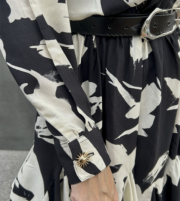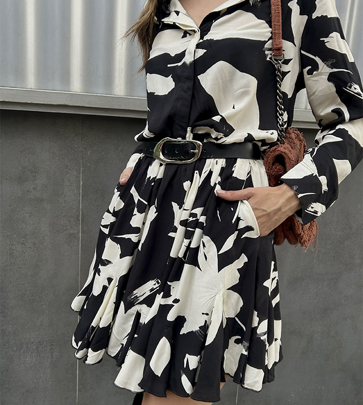 Vestido corto en chifón cuello tipo camisero y caucho de 1 cm en cintura para mejor ajuste, detalle de botones en forma de sol color dorado en los puños de las mangas, adicional la falda tiene bolsillo, también incluye forro solo en la parte de la falda. Una pieza moderna y sofisticada, para un look casual y versátil. Tipo de tela apta para clima frio o cálido, vestido versátil perfecto para uso formal e informal. Manufactura 100% Colombia.
