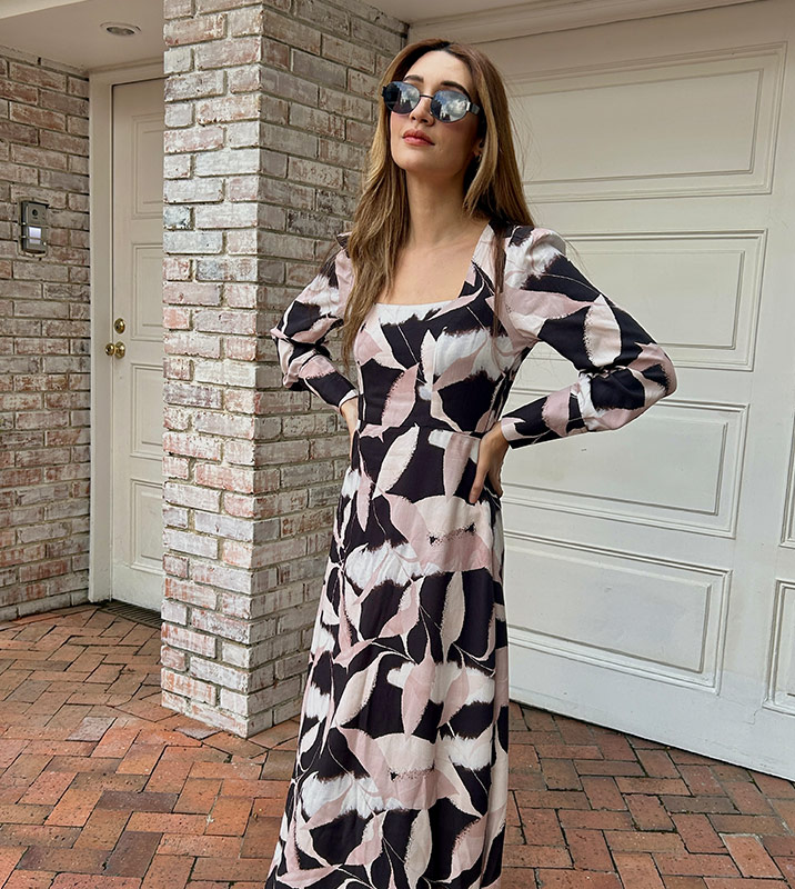 Vestido largo cuello cuadrado manchas